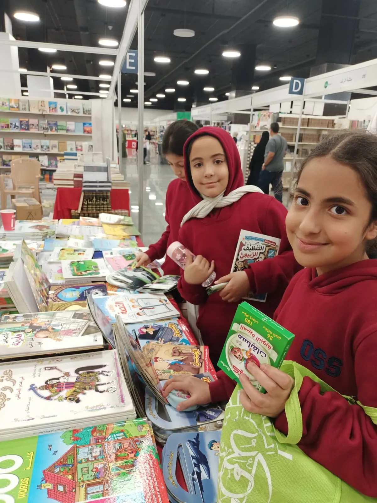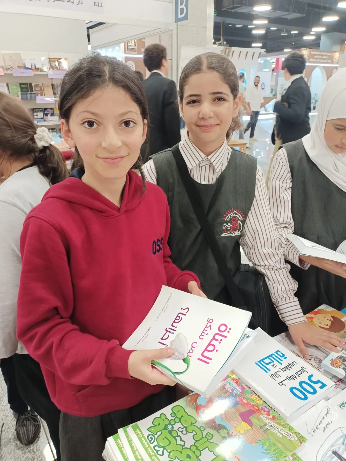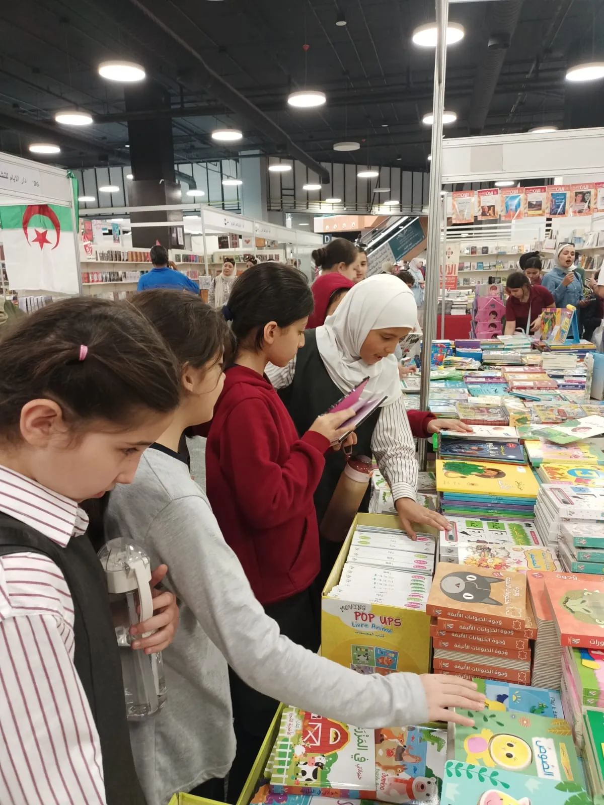 قامت أمينة المكتبة و معلمة اللغة العربية باصطحاب لجنة أصدقاء المكتبة من طالبات الصف الرابع و الخامس لزيارة معرض الكتاب الدولي لتعزيز القراءة لدى الطالبات، حيث تعرفن على أسماء بعض دور النشر من بلدان مختلفة و قد قامت الطالبات بشراء القصص المختلفة باللغتين العربية و الإنجليزية.