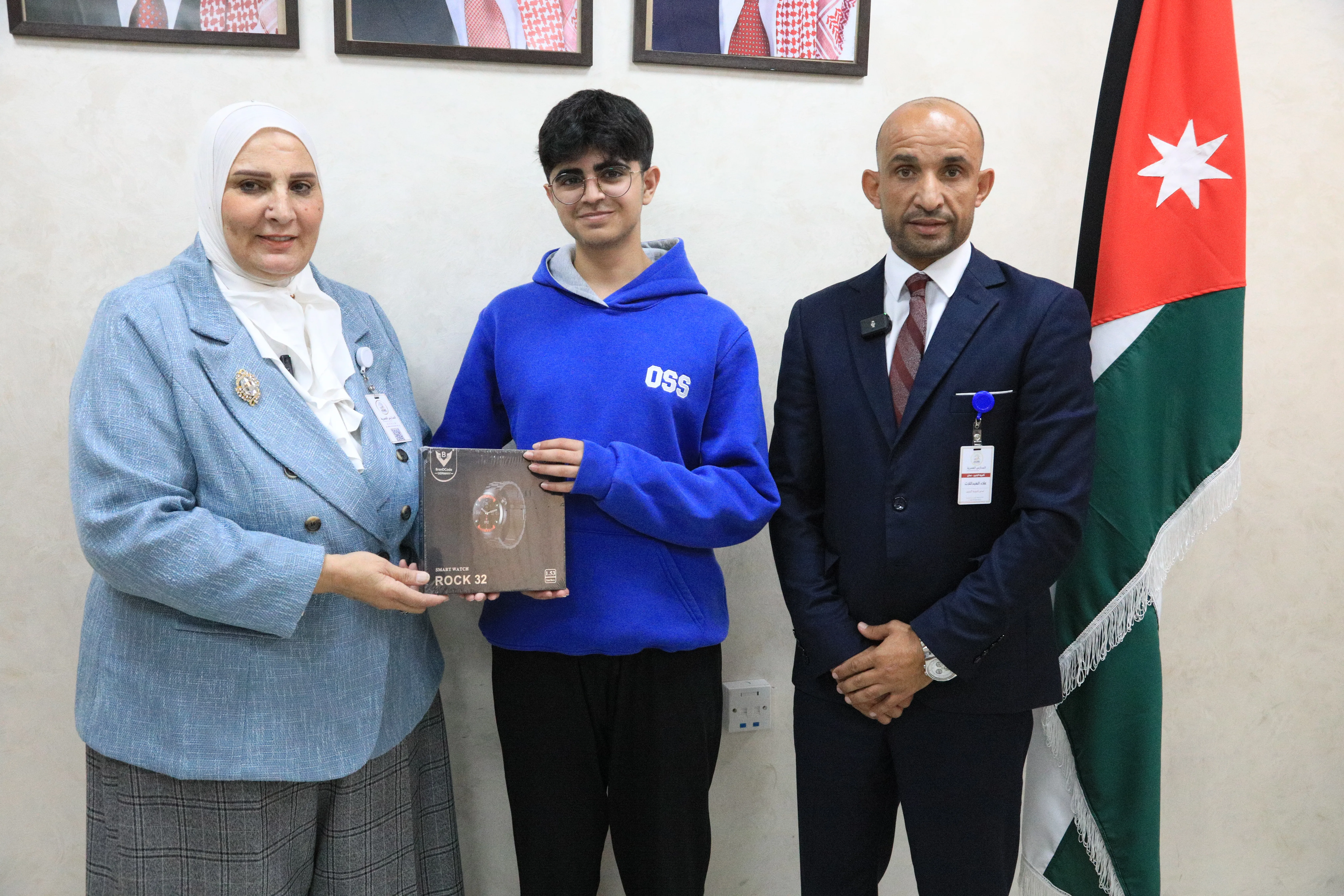 وقد كان لنا الفخر بتكريم الطالب عبد الله الزعبي الحاصل على المركز الثاني على مستوى المملكة بمعدل (29.9)، والطالب أحمد الجرزي الحاصل على المركز الثالث على مستوى المملكة بمعدل (29.8).