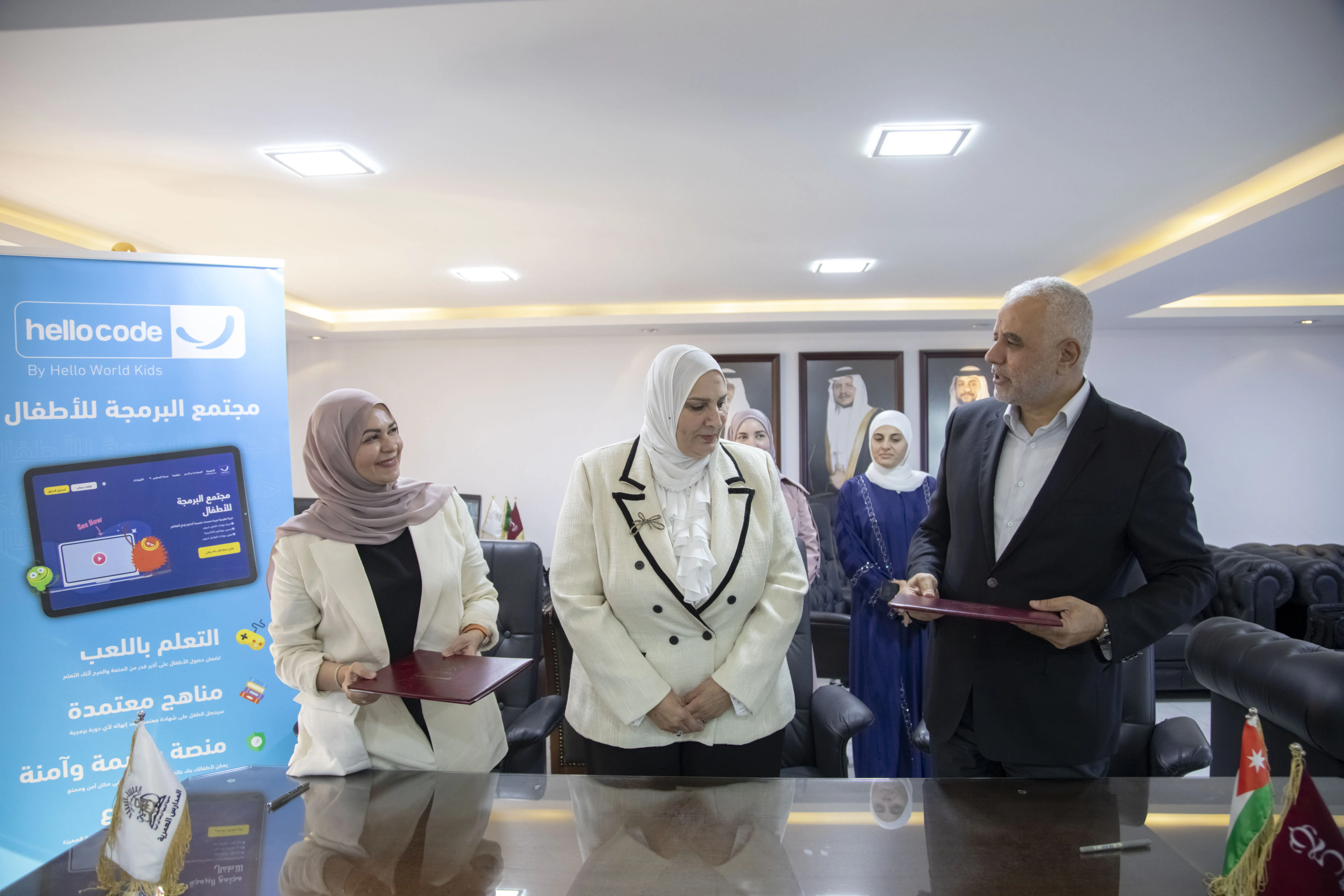 The agreement was signed during a fruitful meeting attended by Dr. Hayam Ramadan, Board Member of Al-Omareyah Schools, and Ms. Hanan Khader, CEO of Helloword Kids.